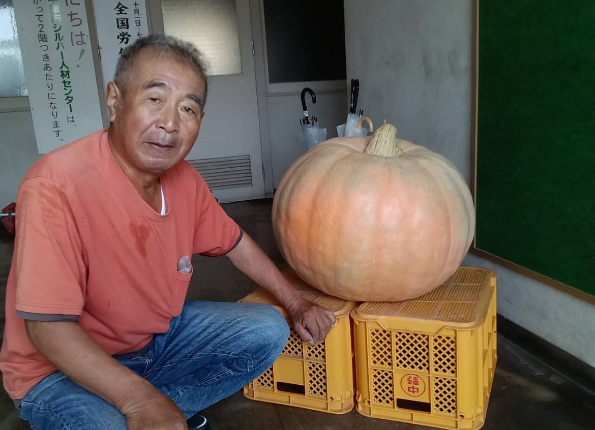 令和7年8月14日、会員さんより大きなかぼちゃのお届け物がありました!